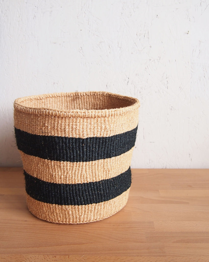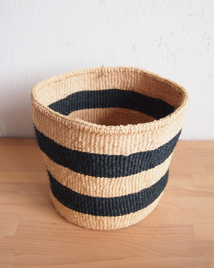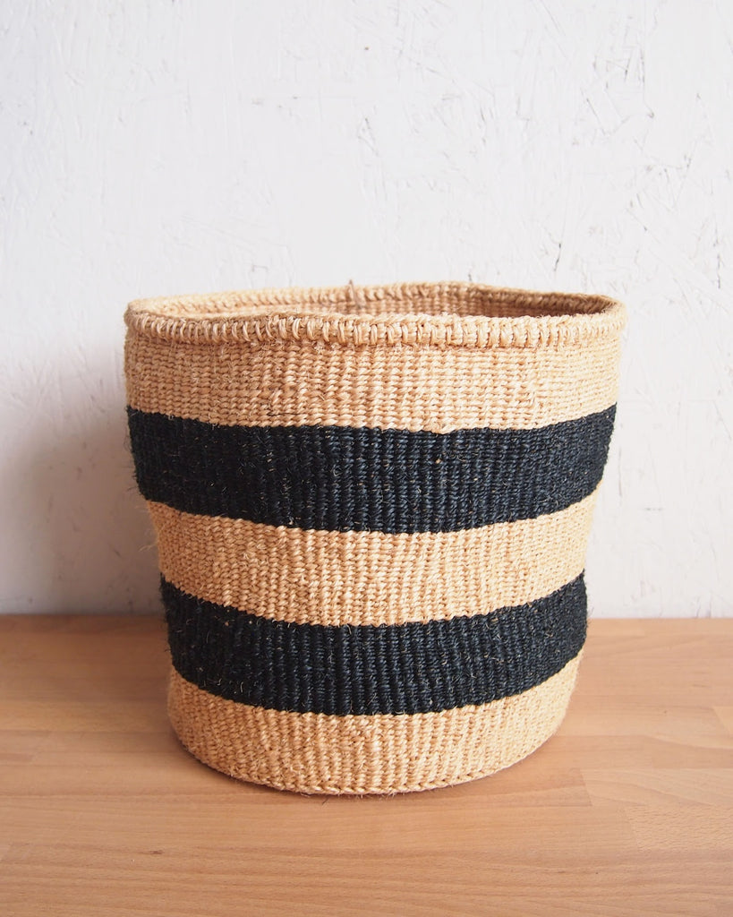 Woven basket handmade by a women's weaving cooperative in southeastern Kenya. These baskets work great as plant holders, storage baskets and catch alls.