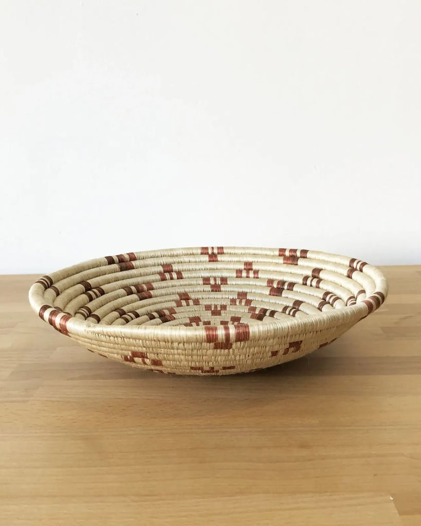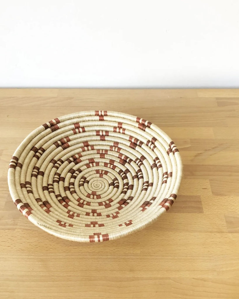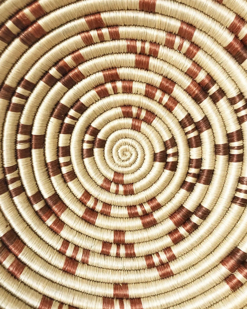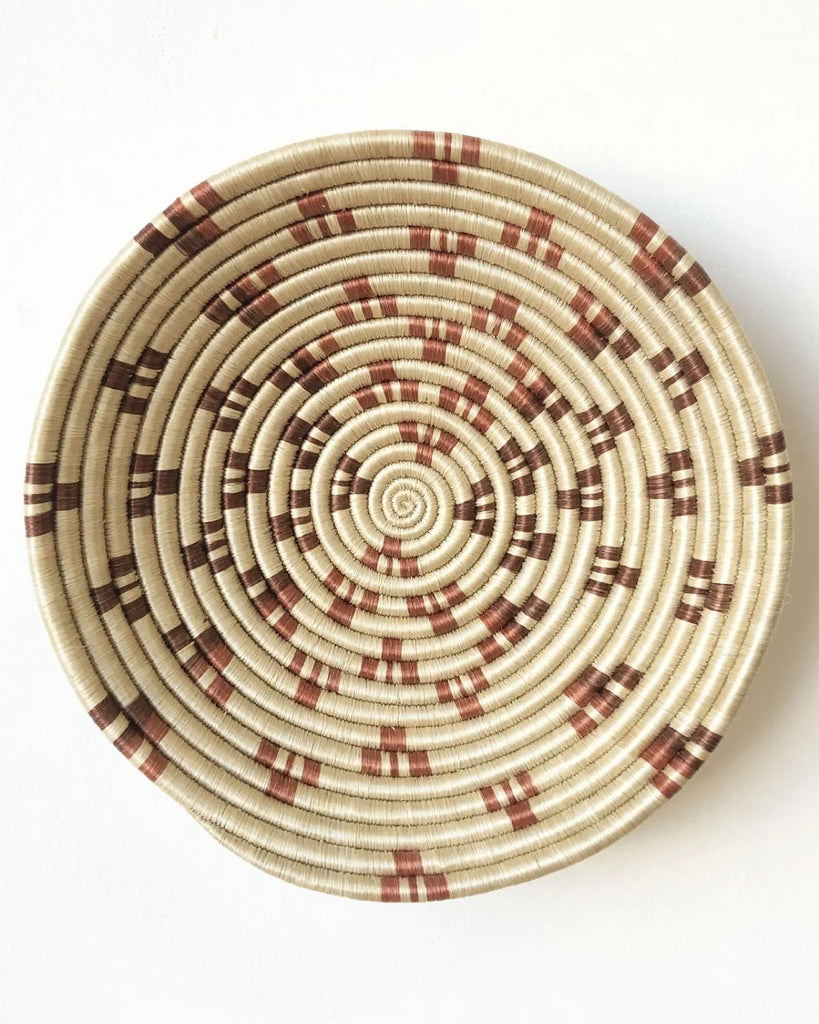This sisal woven bowl that is handmade by artisans in Gitarama, Rwanda. The women grow their own sisal plants, extract the fibers, then hand-dye and weave them into these beautiful works of art. These baskets are great for table displays or can also be hung as art.