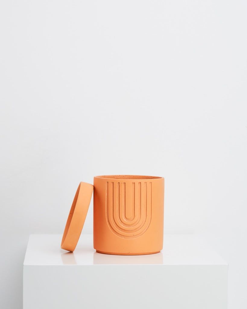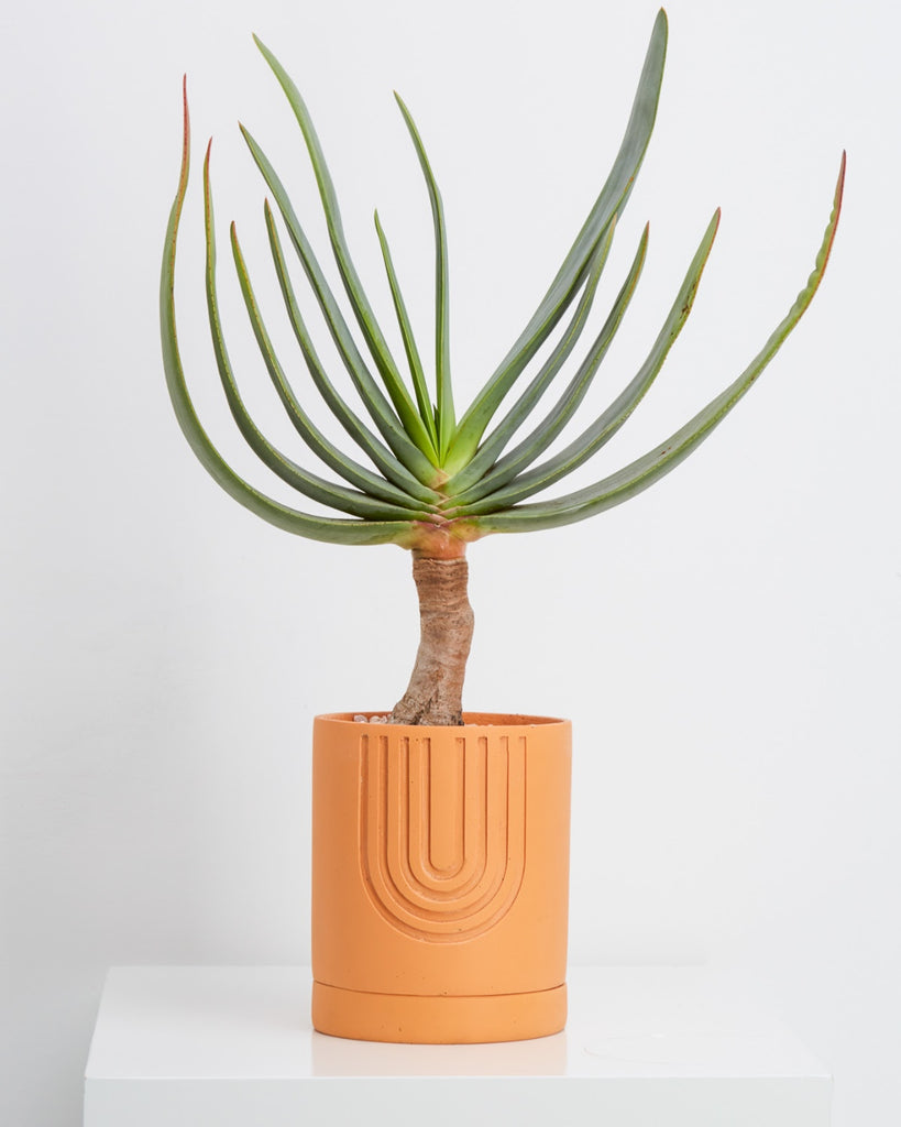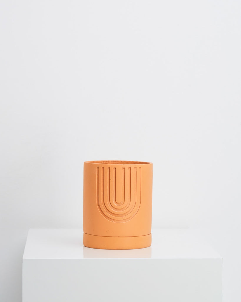 Capra designs planters are made from hand poured resin. Vintage inspired patterns have been hand etched into molds creating stunning symmetrical designs. Irregularities in color and pattern of each finished product are evidence of the hand-made process. Each pot comes with a tray so you can pot directly into the planter and know that your plant is still experiencing proper drainage.