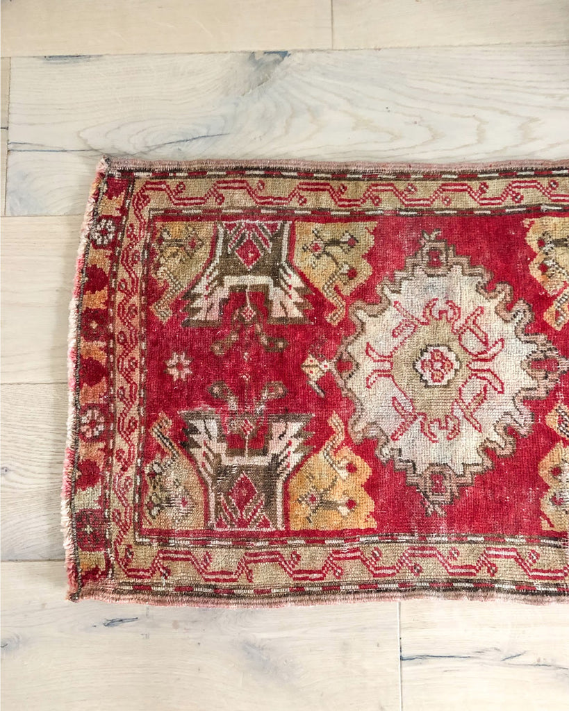 Vintage Turkish Mini Rug. These one of a kind, colorful mini rugs work great at your front door, and in your kitchen or bathroom.