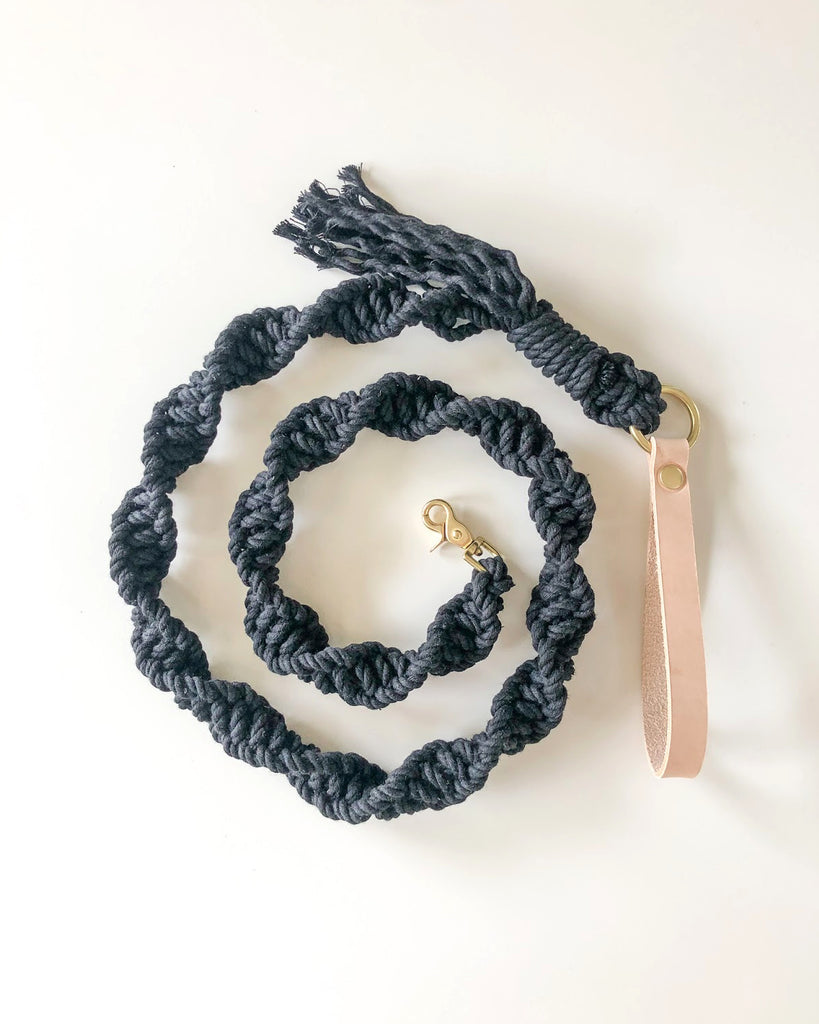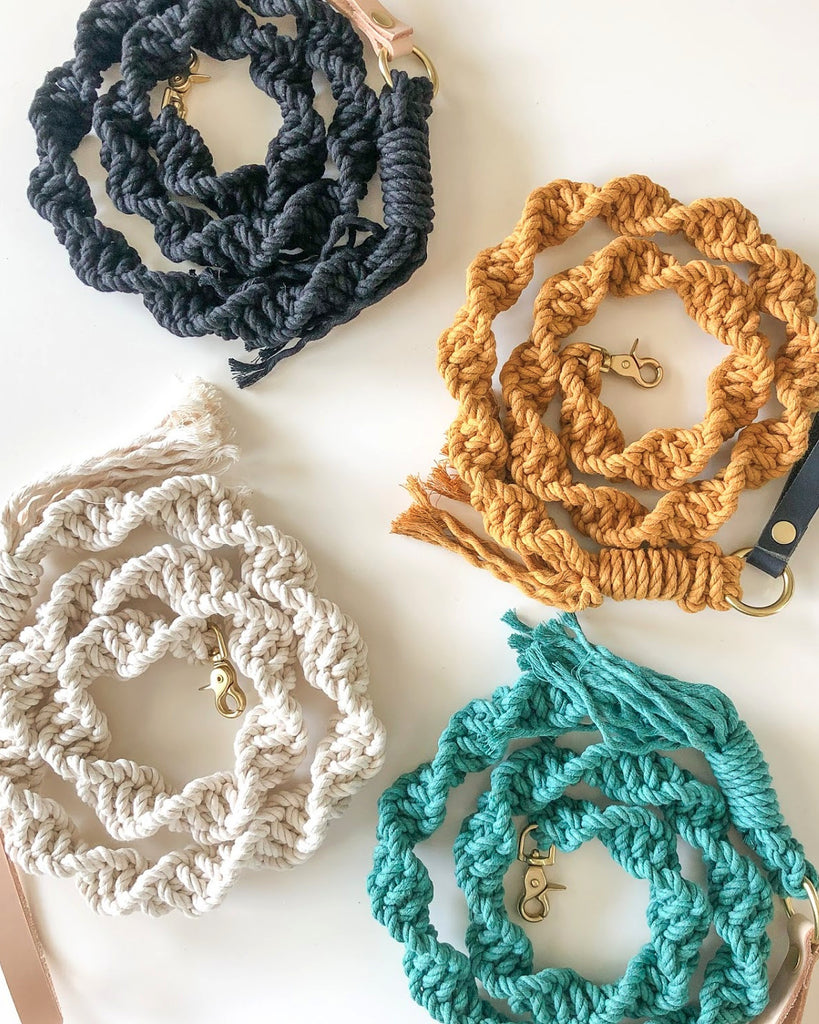 Get ready to have lots of compliments on your new leash. Super durable and strong, pretty and unique Macrame Dog Leash with Leather Handle for your favorite Fur Baby.