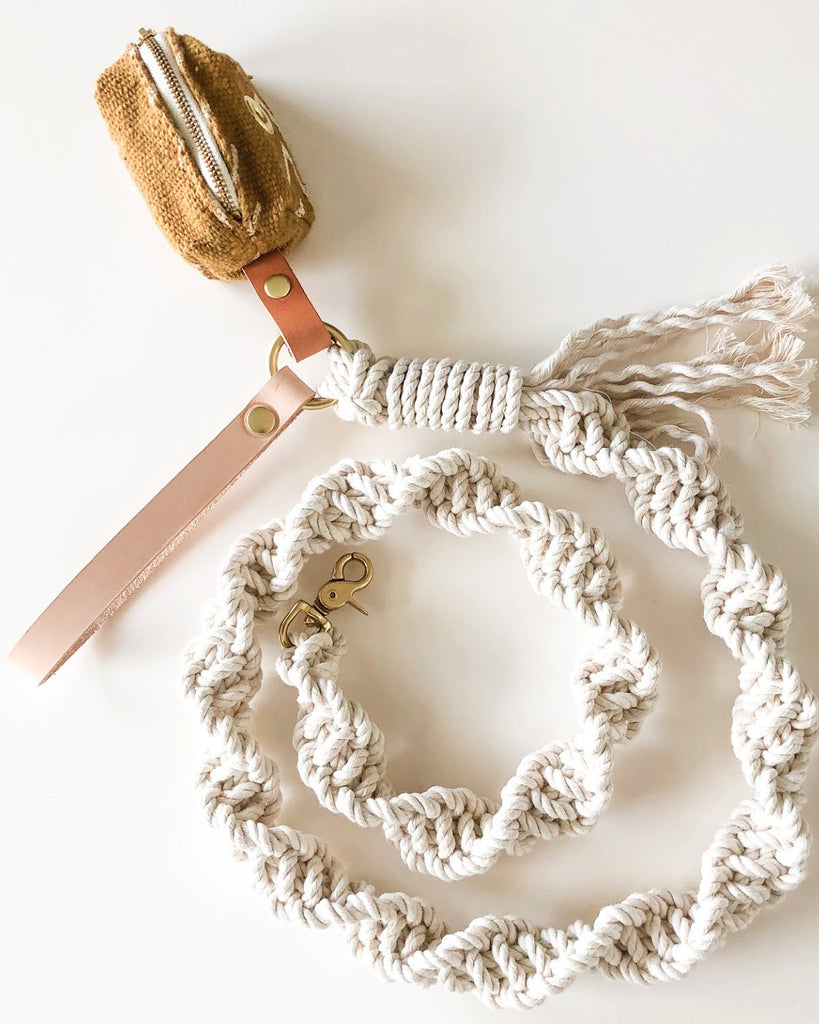 These waste bag holders feature a metal eyelet for the bag dispenser at side with metal zipper and leather loop with brass snap.