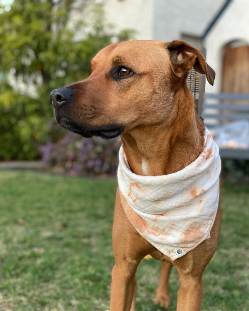 100% Cotton Triple Gauze bandana with distress dye.  Each bandana has been hand dyed and is completely unique.  Super comfy, soft, and light these are the perfect accessory for you or your fur baby.