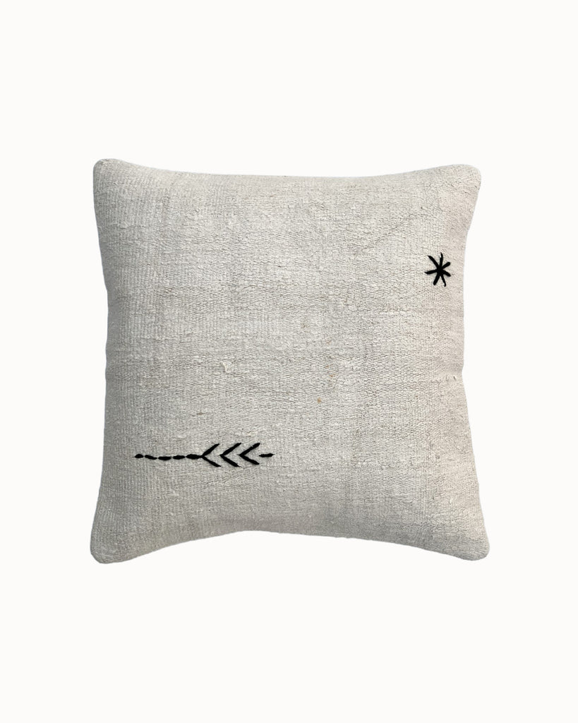 These soft textured pillow covers are made from upcycled vintage hemp Turkish rugs. Each hemp pillow features a unique decorative hand stitched design. 100% Cotton Canvas Back. Zipper closure.